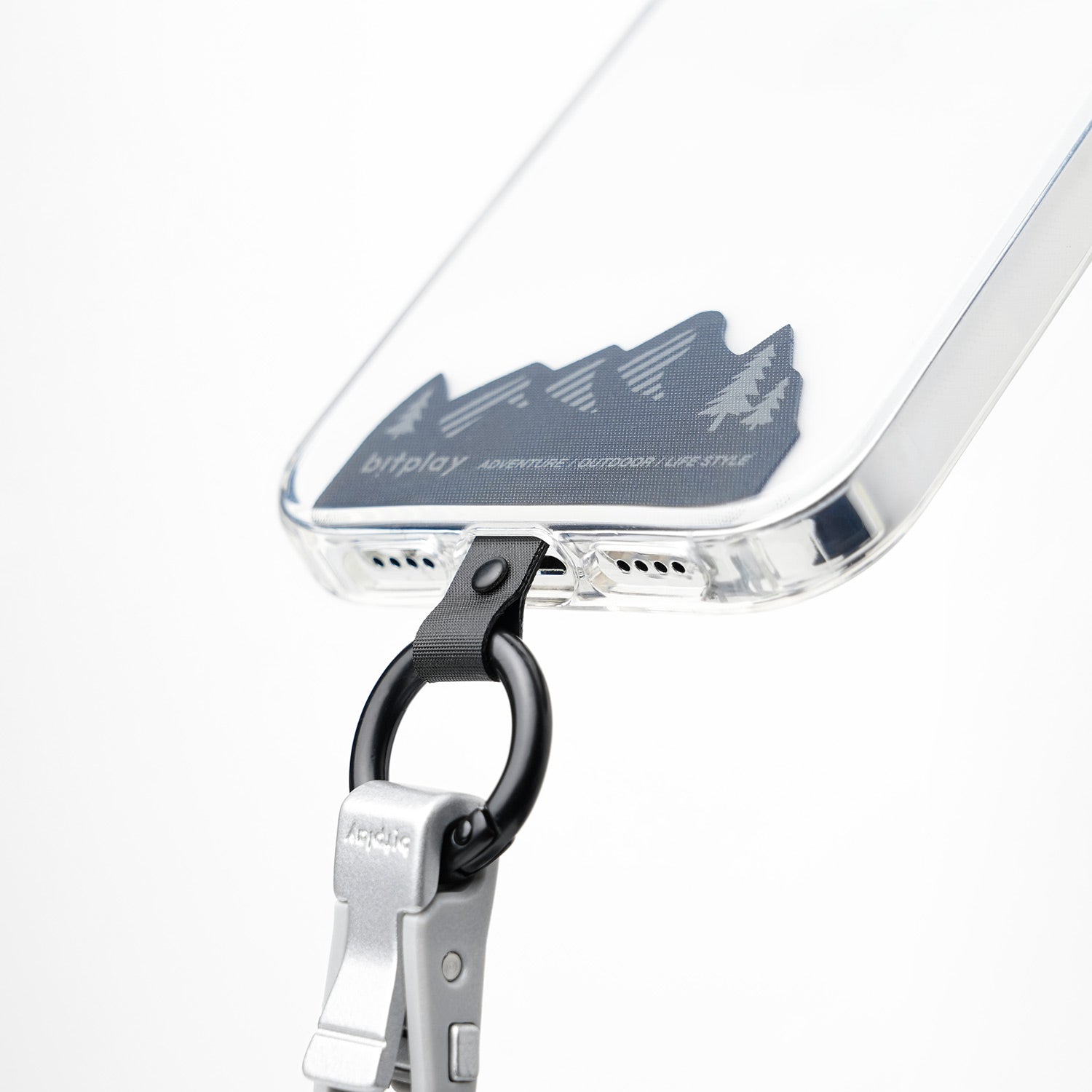 掛繩通用墊片可置入於手機殼內,連接手機本身與掛取配件 。